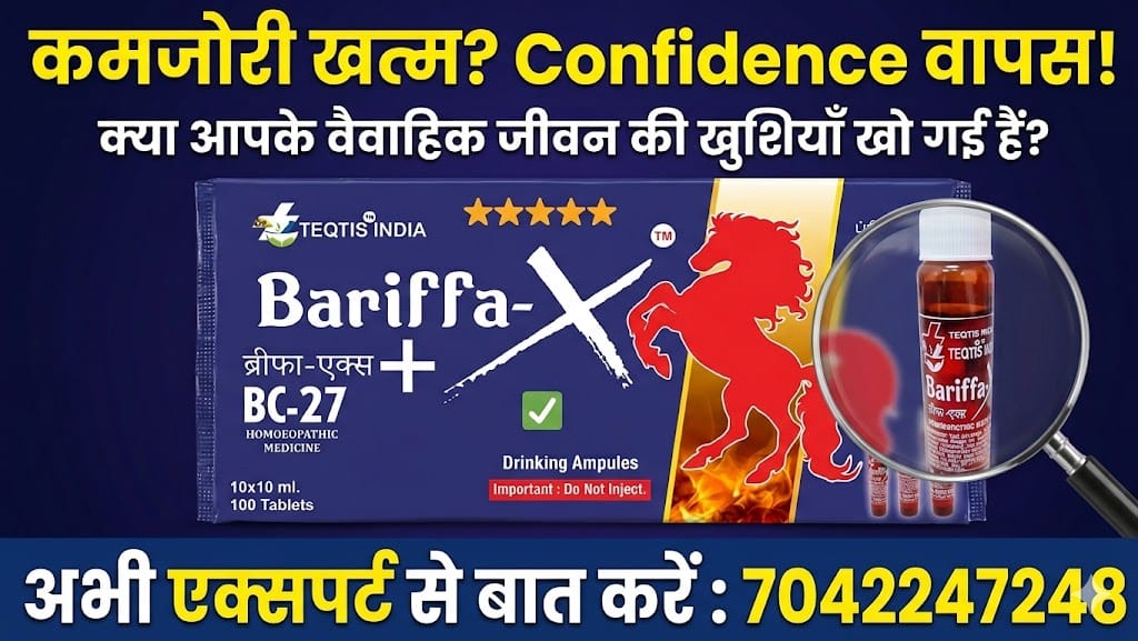 अगर आप भी अपनी परफॉरमेंस और आत्मविश्वास को लेकर चिंतित हैं, तो Bariffa X BC27 – Worldclass Homeopathy Formula आपके लिए सबसे भरोसेमंद समाधान है।