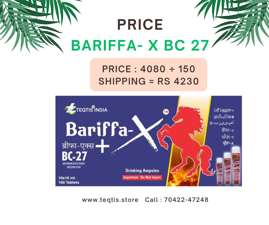 ⭐⭐⭐⭐⭐ [ Bariffa X BC27 ] एक प्रीमियम होम्योपैथिक बायो-कॉम्बिनेशन है, जिसे प्राकृतिक जीवनशक्ति (Vitality) और शारीरिक शक्ति को पुनर्जीवित करने के लिए तैयार किया गया है। यह बिना किसी दुष्प्रभाव (Side Effects) के सामान्य कमजोरी, स्टैमिना की कमी और मानसिक थकान को प्रभावी ढंग से दूर करता है। 🌿💪